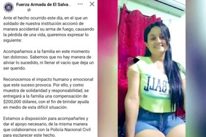 Fuerza Armada otorgará compensación de 200,000 dólares a familia de mujer fallecida en San Salvador Centro