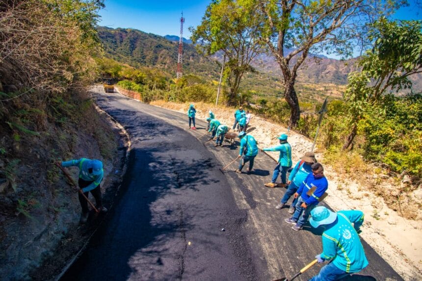as cuadrillas de la DOM colocaron este jueves pavimento asfáltico en 200 metros lineales, como parte de un proyecto de más de 5 kilómetros de mejoramiento de la calle rural entre Arcatao y cantón Teosinte, en Nueva Trinidad, municipio de Chalatenango.