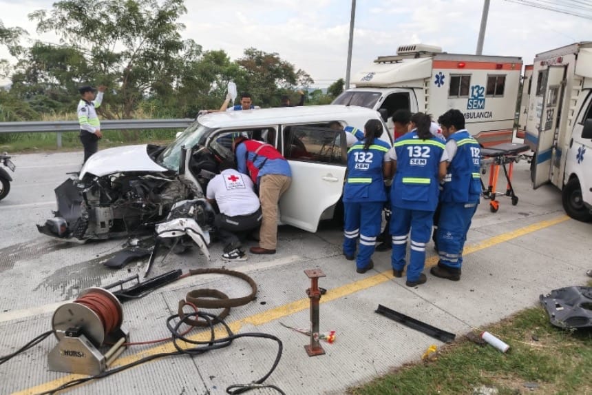 Rescatan a conductor atrapado en su vehículo tras accidente en bulevar Constitución