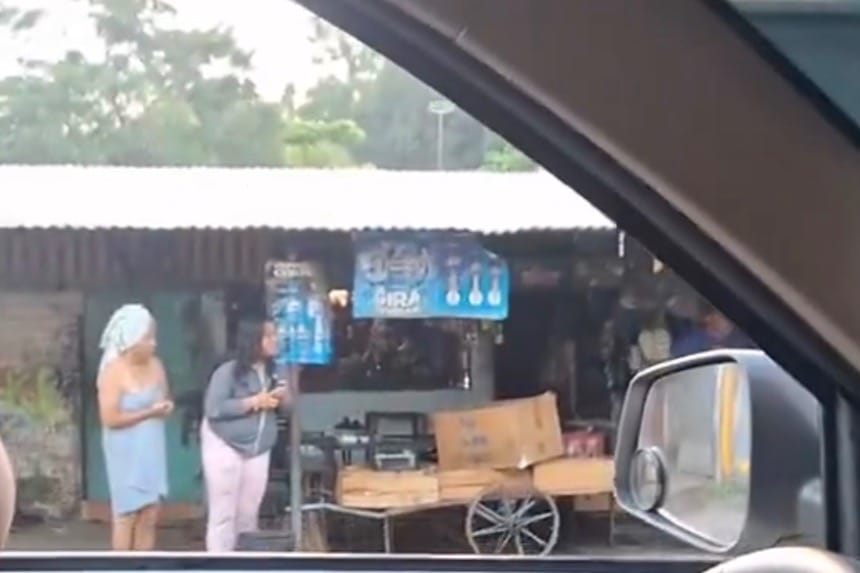 En toalla y sin perder detalle: mujer sale de su casa para ver accidente y se vuelve viral