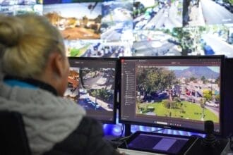 Desde el Centro de Monitoreo, agentes del CAM supervisan dispositivos de videovigilancia…